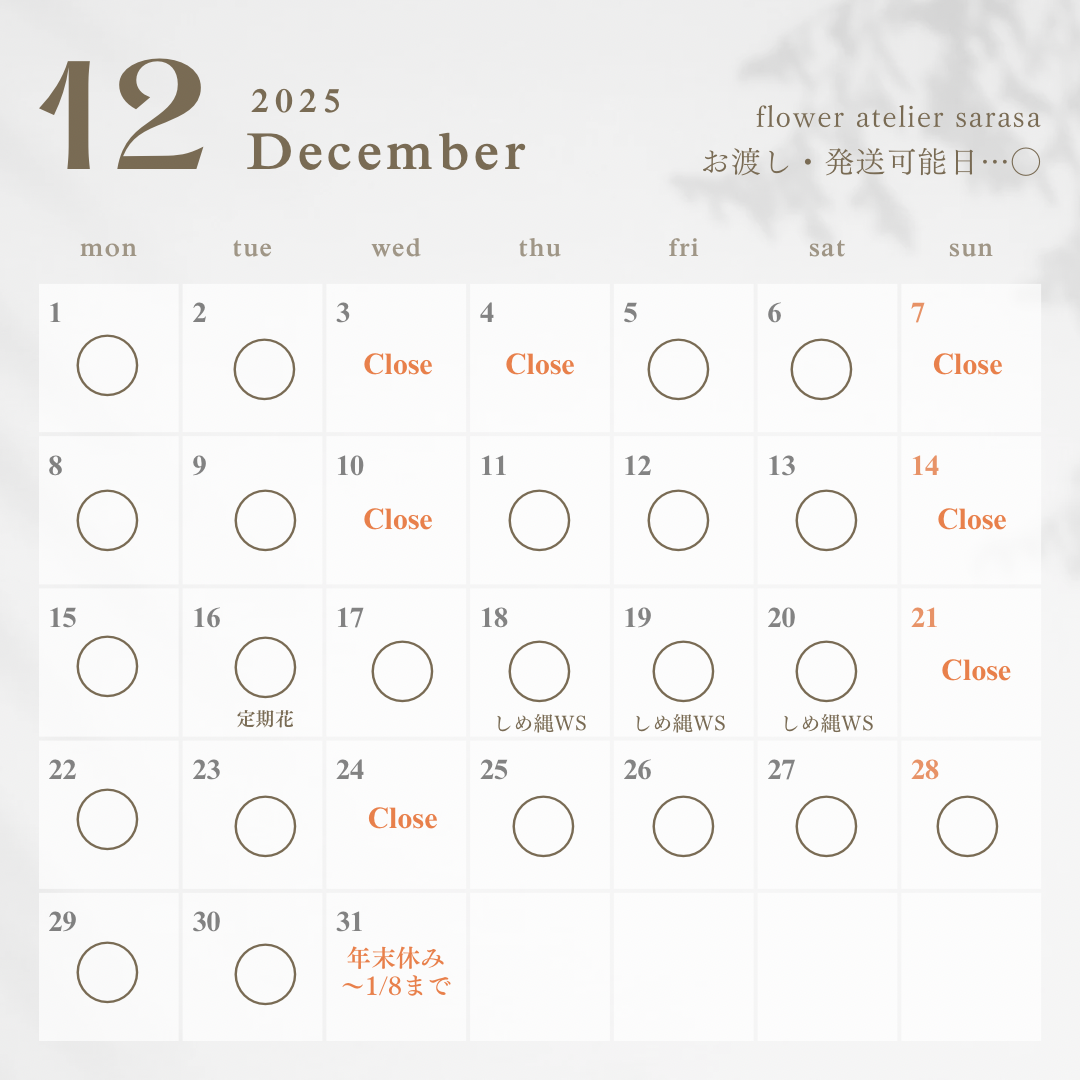 アトリエ受け渡し・発送可能日です。(お届けは発送日の翌日になります。)